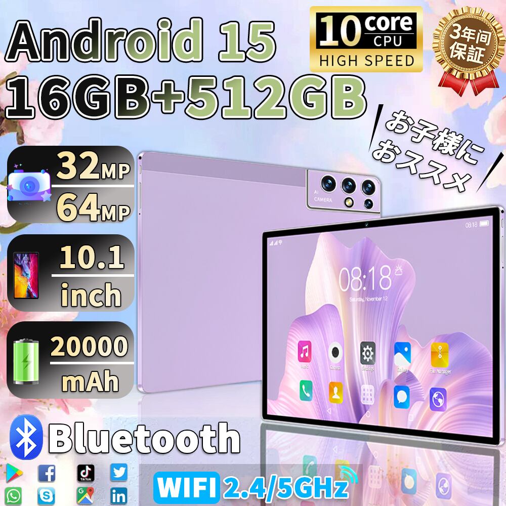 タブレット PC 本体 10インチ Android15 16+512GB 5G Wi-Fiモデル GPS Bluetooth 通話対応 IPS液晶 simフリー GMS認証 軽量 在宅勤務 ネット授業 人気 おすすめ