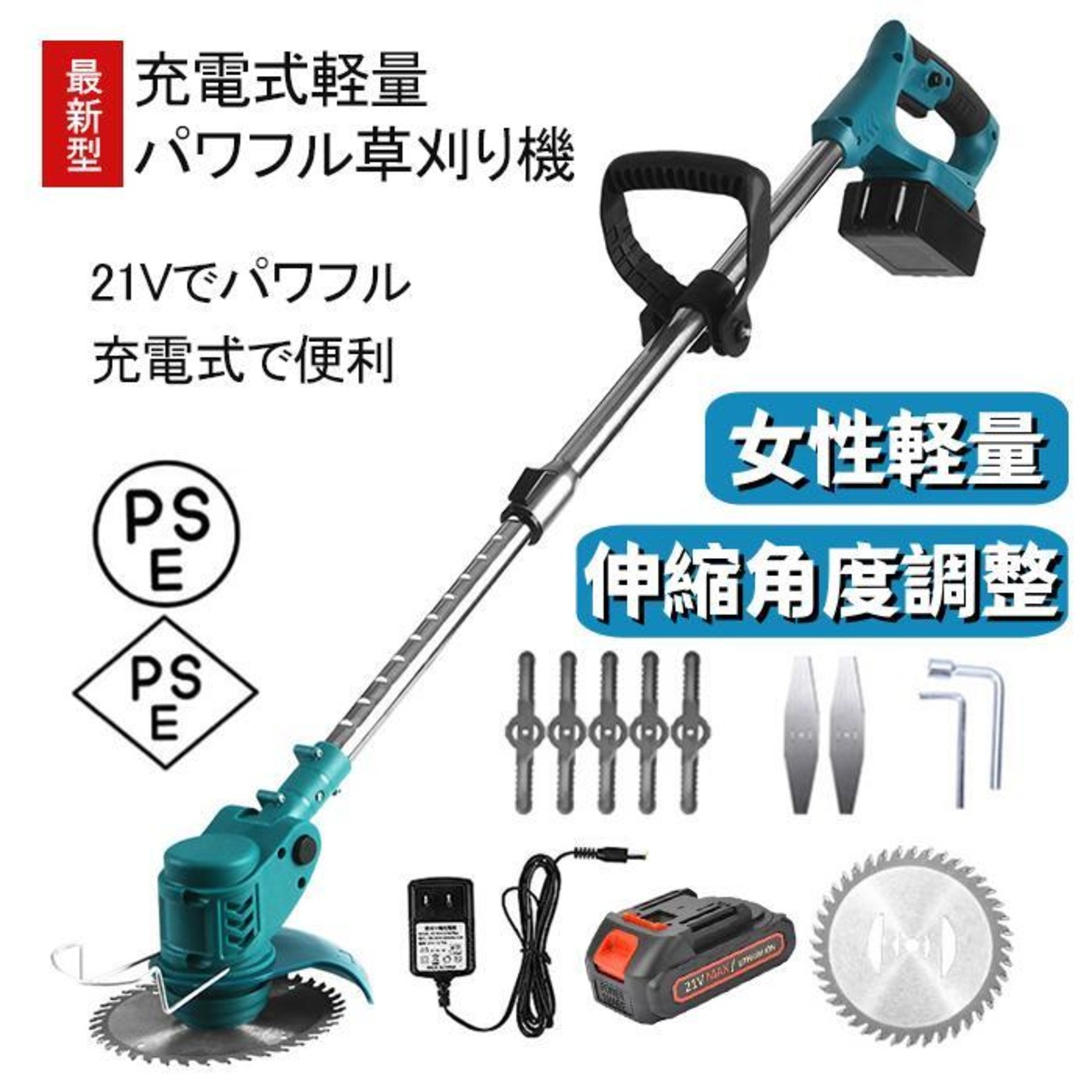 草刈機 充電式 電動草刈り機 角度調整 替え刃付き 枝切り 軽量2024年最新モデル 草刈り機 マキタバッテリー互換 コードレス 家庭用