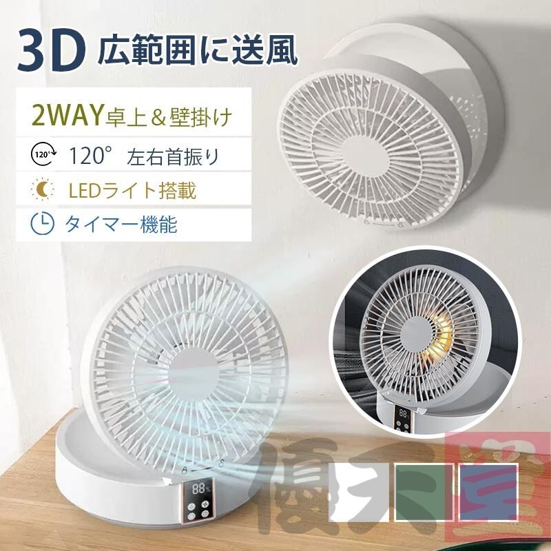 扇風機 小型 卓上扇風機 自動首振り LEDディスプレイ表示 リモコン&タイマー機能 静音 折り畳み式 角度調整 壁掛け USB充電式 3段階風量 熱中症対策