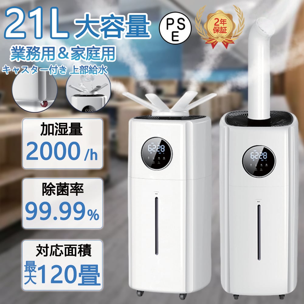 加湿器 大容量 21L リモコン付 業務用家庭用加湿器 連続30時間加湿 湿度設定 3段階 4つ吹出口 上から給水 静音 節電 省エネ 空気清浄機 オフィス 乾燥対策